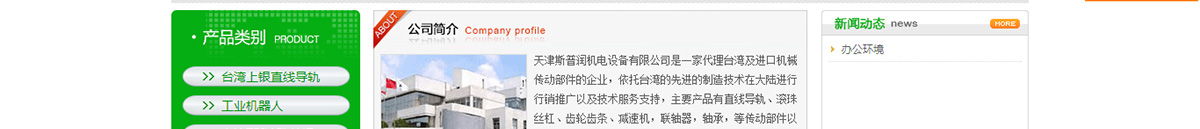 天津斯普潤(rùn)機(jī)電設(shè)備有限公司是一家代理臺(tái)灣及進(jìn)口機(jī)械傳動(dòng)部件的企業(yè),依托臺(tái)灣的先進(jìn)的制造技術(shù)在大陸進(jìn)行行銷推廣以及技術(shù)服務(wù)支持,主要產(chǎn)品有直線導(dǎo)軌、滾珠絲杠、齒輪齒條、減速機(jī),聯(lián)軸器,軸承,等傳動(dòng)部件以及電氣產(chǎn)品。