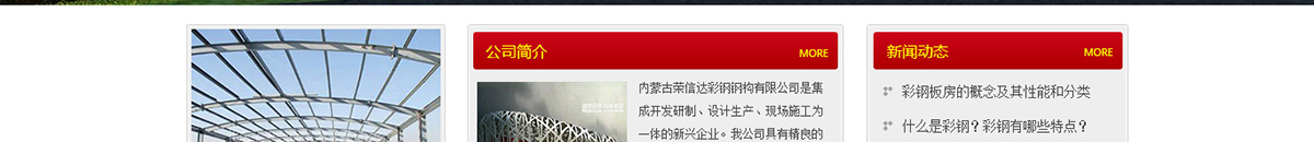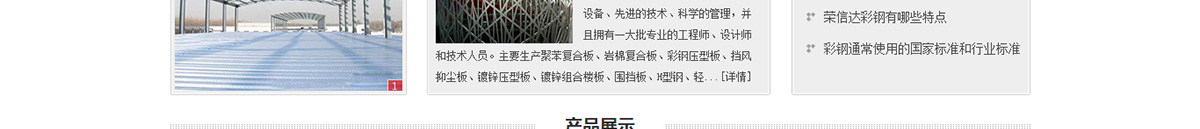 內(nèi)蒙古榮信達(dá)彩鋼鋼構(gòu)有限公司是集成開發(fā)研制、設(shè)計生產(chǎn)、現(xiàn)場施工為一體的新興企業(yè)。我公司具有精良的設(shè)備、先進(jìn)的技術(shù)、科學(xué)的管理,并且擁有一大批的工程師、設(shè)計師和技術(shù)人員。主要生產(chǎn)聚苯復(fù)合板、巖棉復(fù)合板、彩鋼壓型板、擋風(fēng)抑塵板、鍍鋅壓型板、鍍鋅組合樓板、圍擋板、H型鋼、輕鋼結(jié)構(gòu)、C、Z型鋼檁條等新型建材產(chǎn)品。