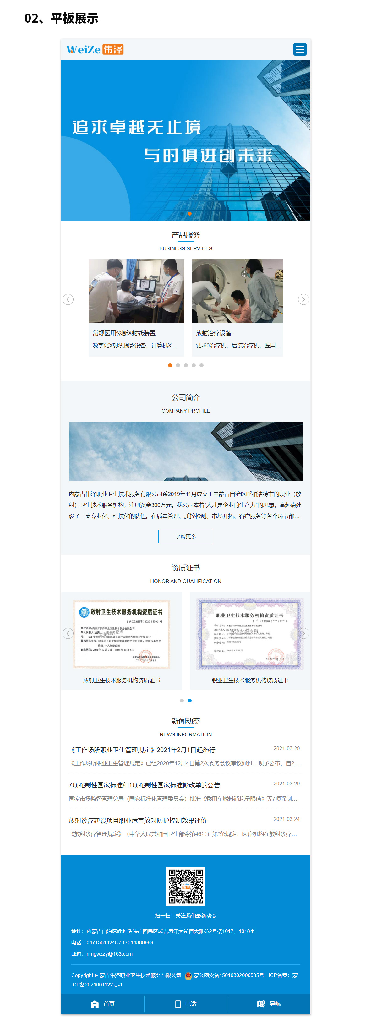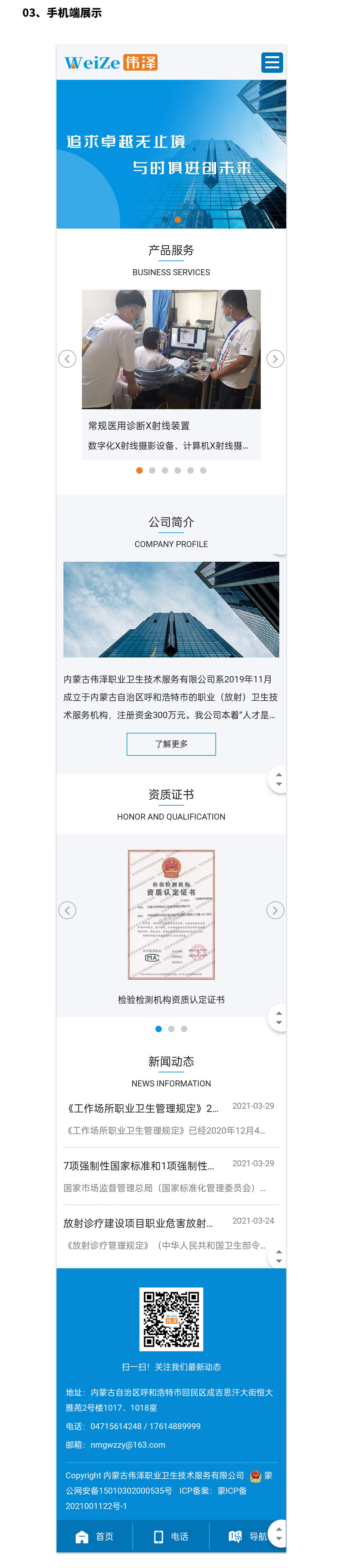 內蒙古偉澤職業(yè)衛(wèi)生技術服務有限公司系2019年11月成立于內蒙古自治區(qū)呼和浩特市的職業(yè)(放射)衛(wèi)生技術服務機構,注冊資金300萬元。我公司本著“人才是企業(yè)的生產力”的思想,高起點建設了一支化、科技化的隊伍。在質量管理、質控、市場開拓、客戶服務等各個環(huán)節(jié)都配備了人員,公司員工總數(shù)20余人,其中技術人員8人,高 級職稱人員2人,中 級職稱5人,本科以上學歷占員工人數(shù)90%以上。我公司以做事先做人為原則,牢記客戶第 一,服務第 一,質量第 一為原則的基礎上為客戶服務。