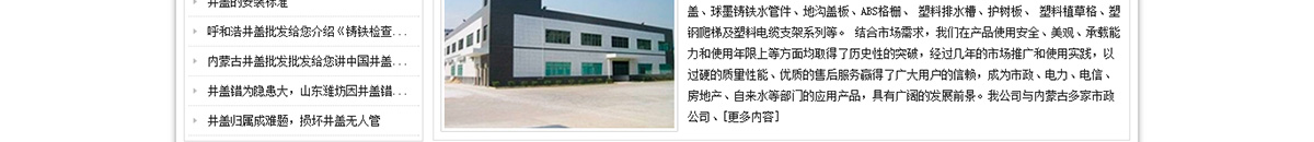 成中匯建材井蓋批發(fā)是致力于市政道路設(shè)施,球墨鑄鐵井蓋、雨水箅子、高分子復(fù)合材料、雨水箅子、鐵骨架水磨石、井蓋、雨水箅子、球墨鑄鐵水管件的生產(chǎn)企業(yè),公司落于中國鑄造之鄉(xiāng)(河北滄州)公司現(xiàn)有員工358人,技術(shù)研究人員8名,從事井蓋的設(shè)計與研發(fā)??傉嫉孛娣e60000多平方米。建筑面積30000多平方米,高分子井蓋廠1個(天成復(fù)合井蓋廠)鑄造分廠三個,年生產(chǎn)供應(yīng)能力20000噸,總資產(chǎn)8000萬元。
