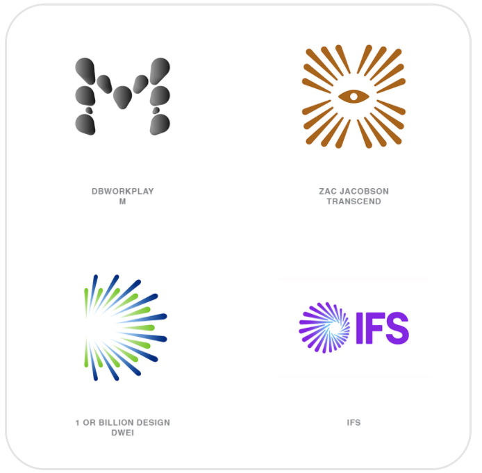很容易跳到這個集合是過去幾年經(jīng)常使用的光環(huán)和光環(huán)的衍生物。這些更多是關(guān)于軸本身,而不是提供一個光環(huán)來限制中心特征。這些末端的圓形使它們保持友好和平易近人,并且確實是它們的區(qū)別元素。在此顯示中,您會注意到使用單一色調(diào)或使用漸變來定義形狀和距離時,效果同樣令人印象深刻。這些標記幾乎總是從被一陣光照亮的空洞中心投射出來,傳達出一種擴張、希望和外展的感覺。這是關(guān)于行動的管理,而不是引起它的原因。