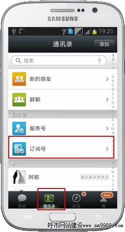 5、 點擊通訊錄,再點擊訂閱好號,如圖