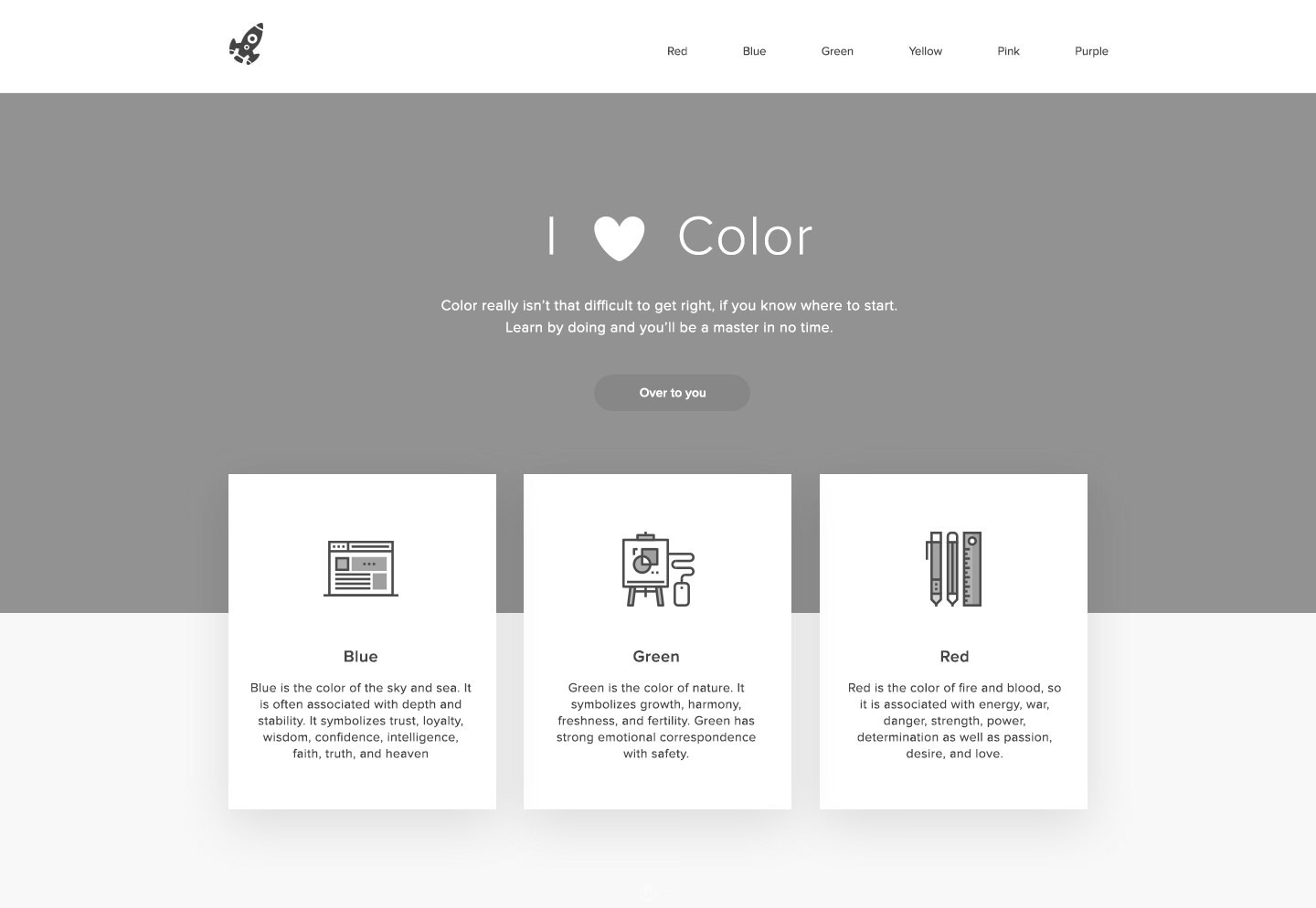 現(xiàn)在我們已經(jīng)有了自己的配色方案,可以使用它了。配色應(yīng)用其實可以用一篇全新的文章來討論,但為了加深大家的理解,我給大家展示一個網(wǎng)頁設(shè)計實例,這個網(wǎng)頁將會以灰度模式和顏色模式來展現(xiàn)。