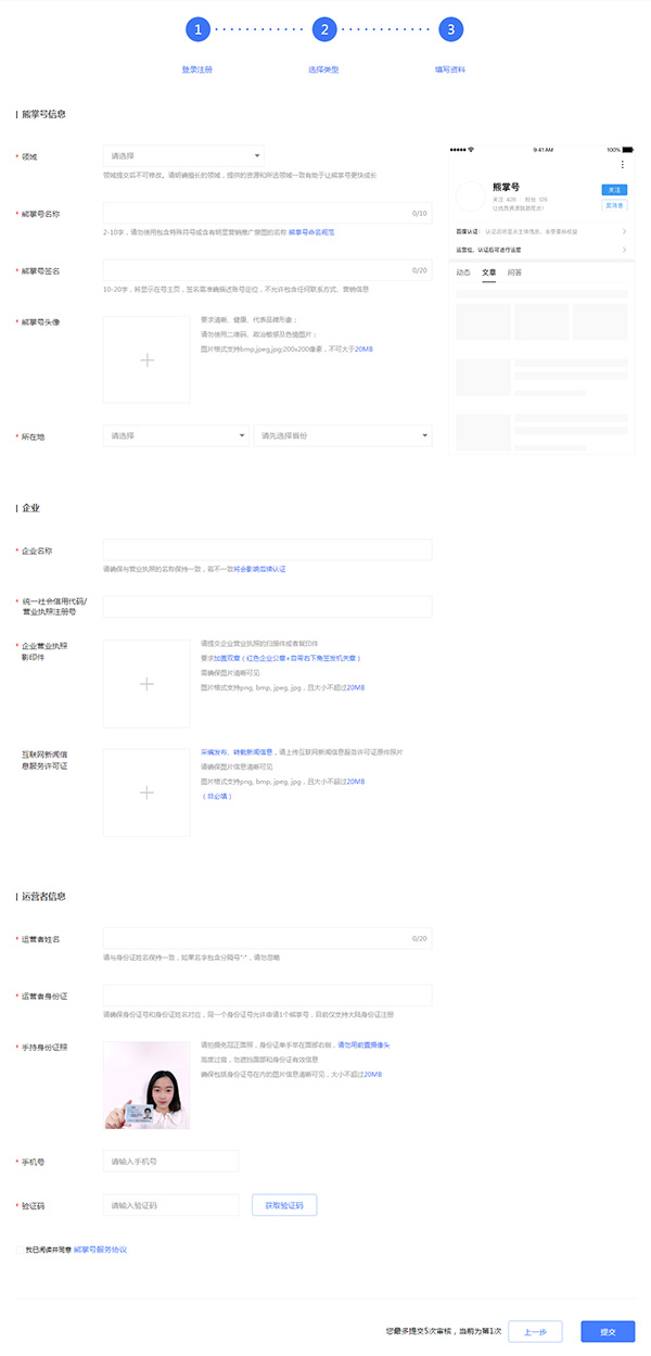 注冊熊掌號需要哪些資料