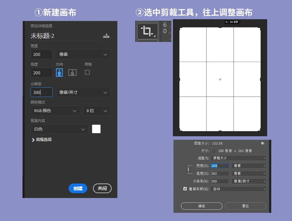 新建200px*200px的畫布,適當(dāng)調(diào)整畫布的長(zhǎng)或者寬中其中的一項(xiàng)。因?yàn)橐婚_始更想突出晚霞,所以我把高度稍微拉高了一些。拉完之后的畫布高度是200px*262px。