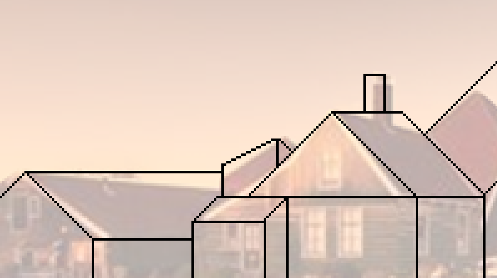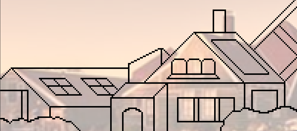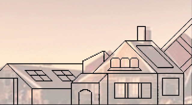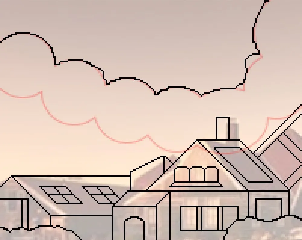 將筆刷放大,沿著描邊,填充房子的顏色。切記房子和房子之間的顏色要隔開。窗戶都統(tǒng)一使用墻面顏色的深色進(jìn)行填充。每一個(gè)塊面分一個(gè)圖層,方便后面做細(xì)節(jié)。