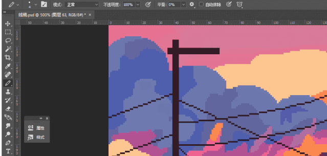 那么前面講了辣么多,也不知道你們學(xué)會(huì)了沒有。接下來就是我們本次教程的重頭戲了?。?!用ps繪制像素風(fēng)插畫場(chǎng)景?。?!在開始前,我們先來說一說用ps繪制像素風(fēng)插畫的優(yōu)點(diǎn)是掌控比較靈活,對(duì)于復(fù)雜的光影處理也比較靈活。缺點(diǎn)是,雖然鼠標(biāo)也可以畫,但是對(duì)手的靈活度有較高要求。