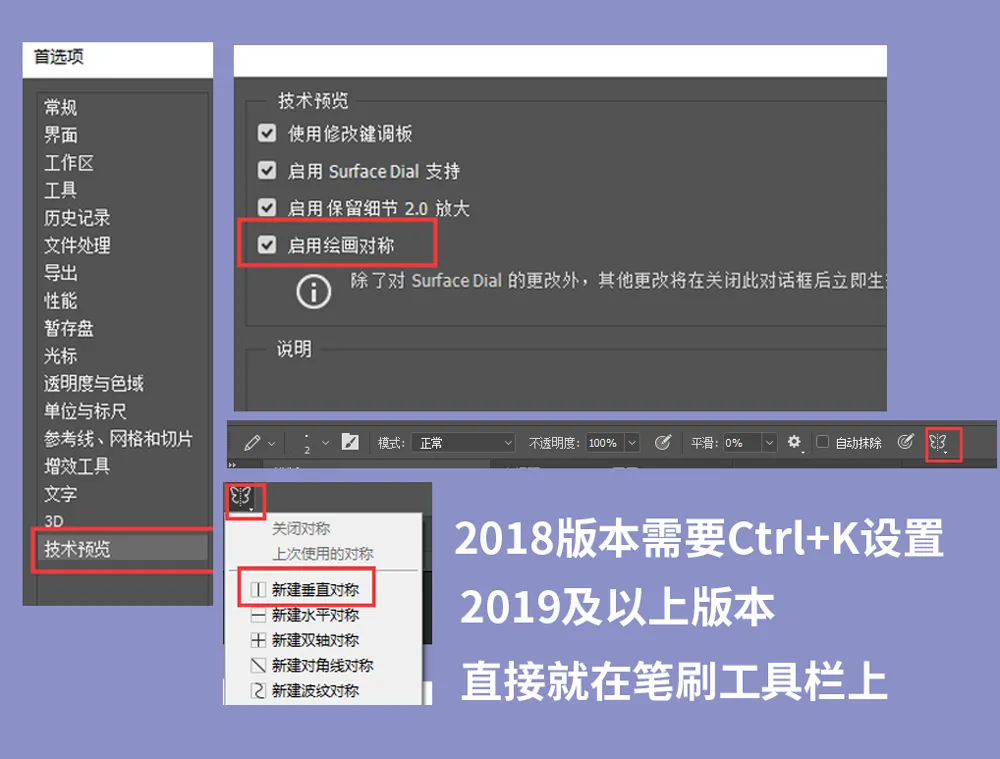 為了保證對(duì)稱,可以使用ps2018以上版本的繪畫對(duì)稱工具。